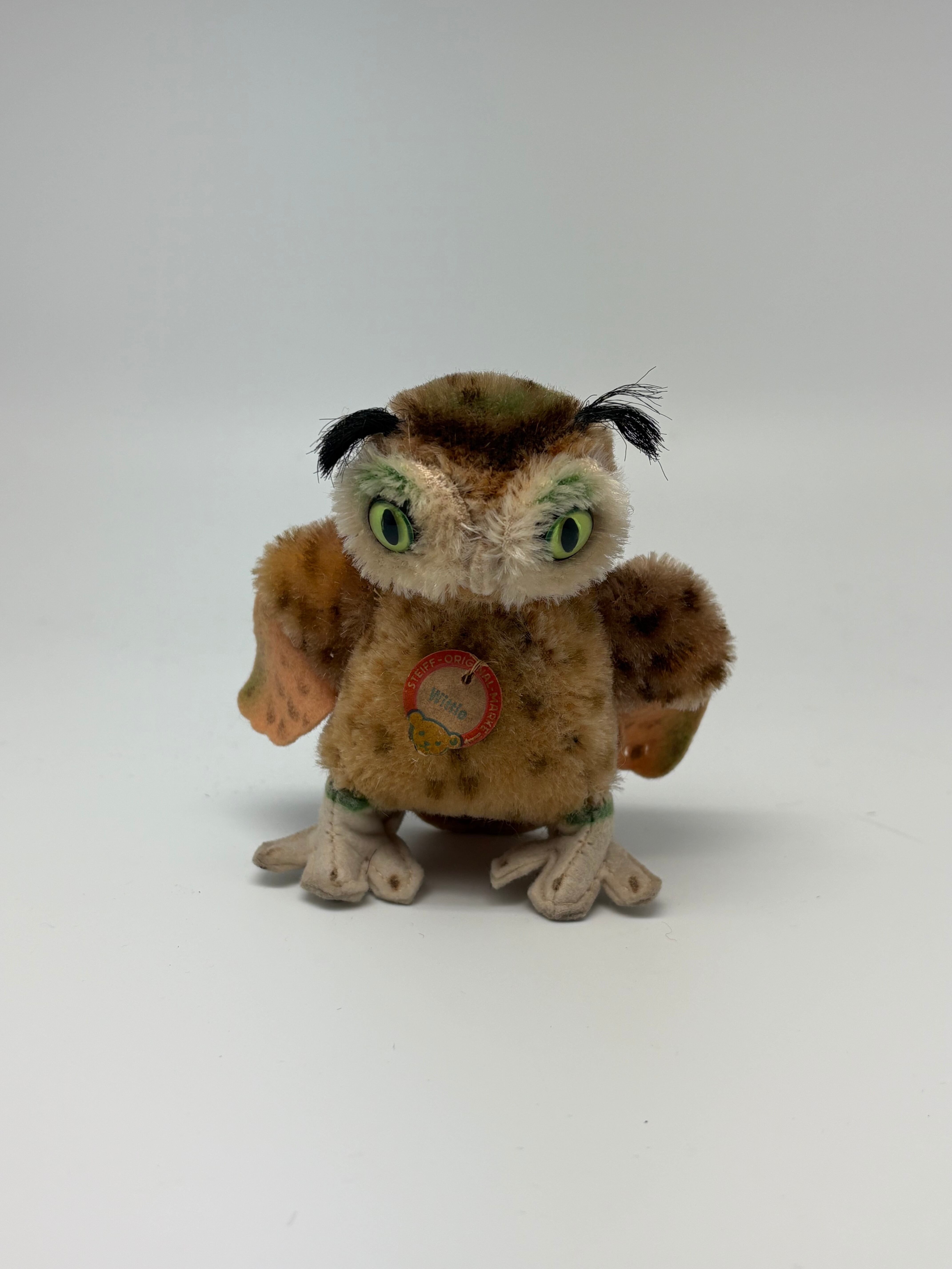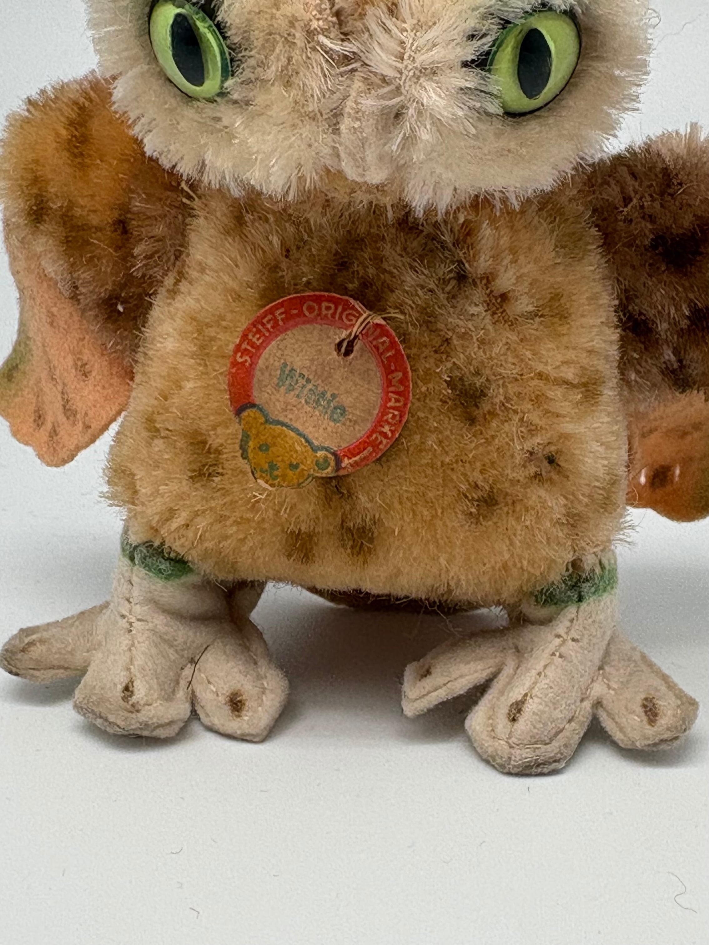 シュタイフ社のフクロウ“Wittie”です IDは、ネームタグが残っています。 サイズ:高さ 約10cm 幅 約10cm 年代 :1959-1967